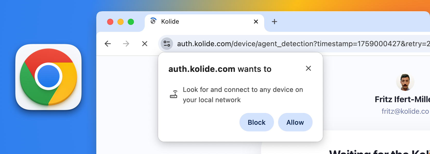 “auth.kolide.com wants to: Look for and connect to any device on your local network”
