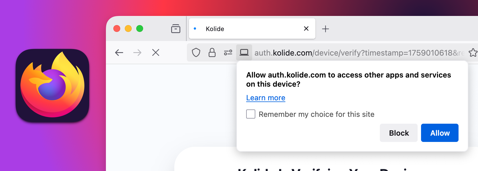 “Allow auth.kolide.com to access other apps and services on this device?”